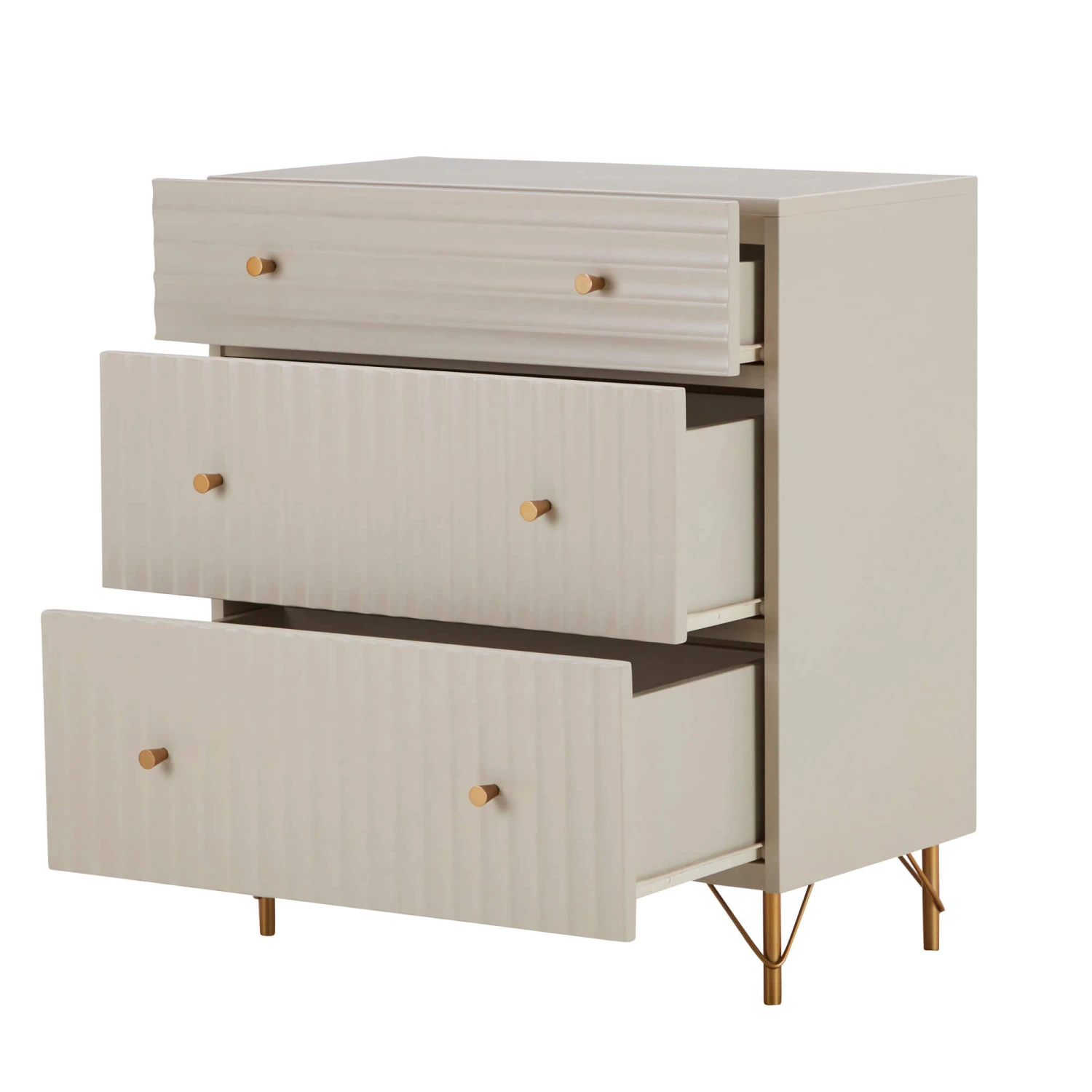 Each piece within the Annette range has been meticulously crafted from mahogany wood with a perfectly painted finish, supported by brushed gold metal legs which feature a unique and contemporary, decorative trestle design. With three spacious drawers, the 3 drawer chest provides ample storage for clothing or accessories, whilst a selection of coordinating pieces available in the range ensure the Annette collection offers something for every home.