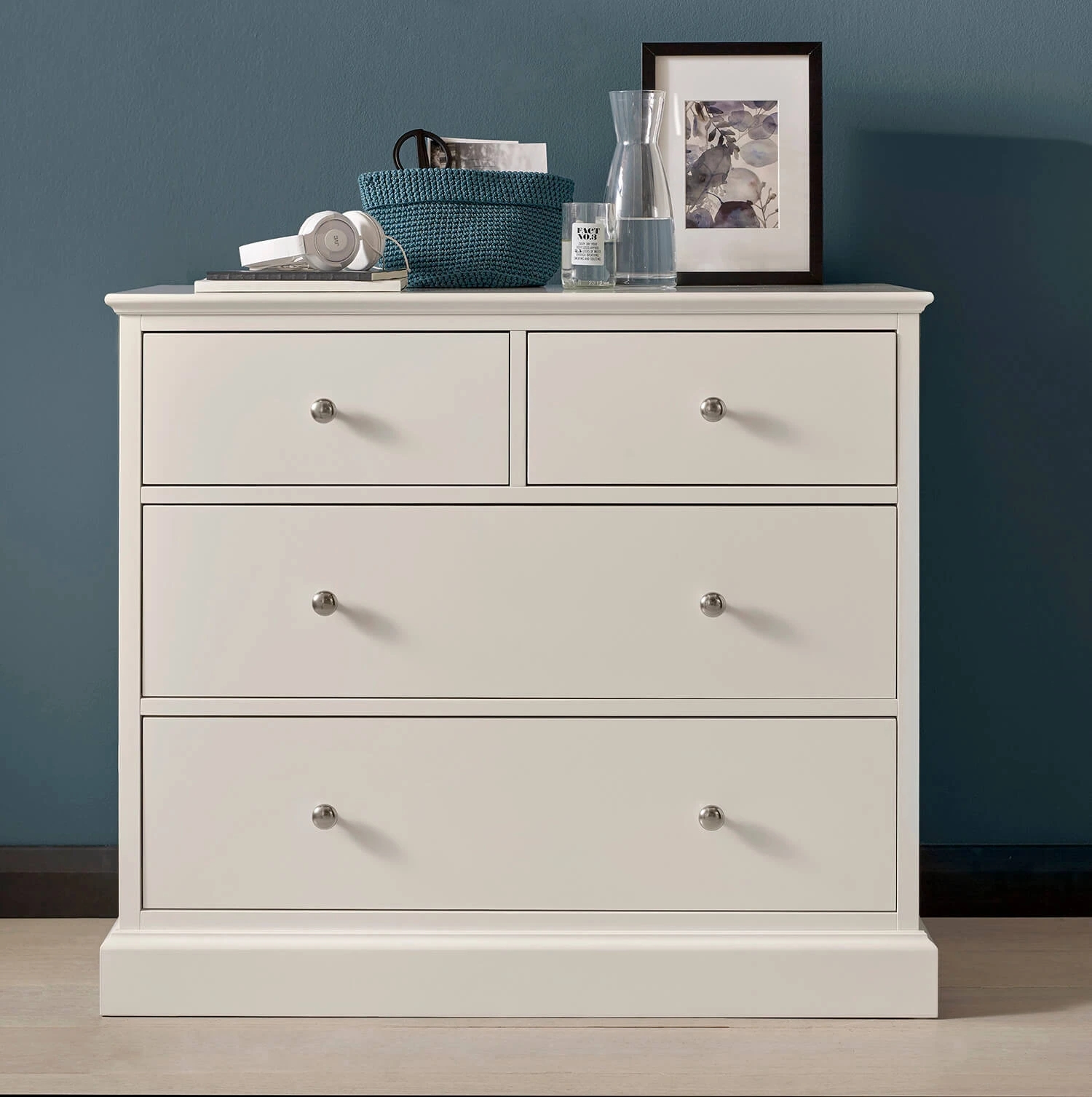 The Ascot White 4 Drawer Chest provides ample storage space for clothing and accessories, perfect for t-shirts, nightwear or any other folded garments.