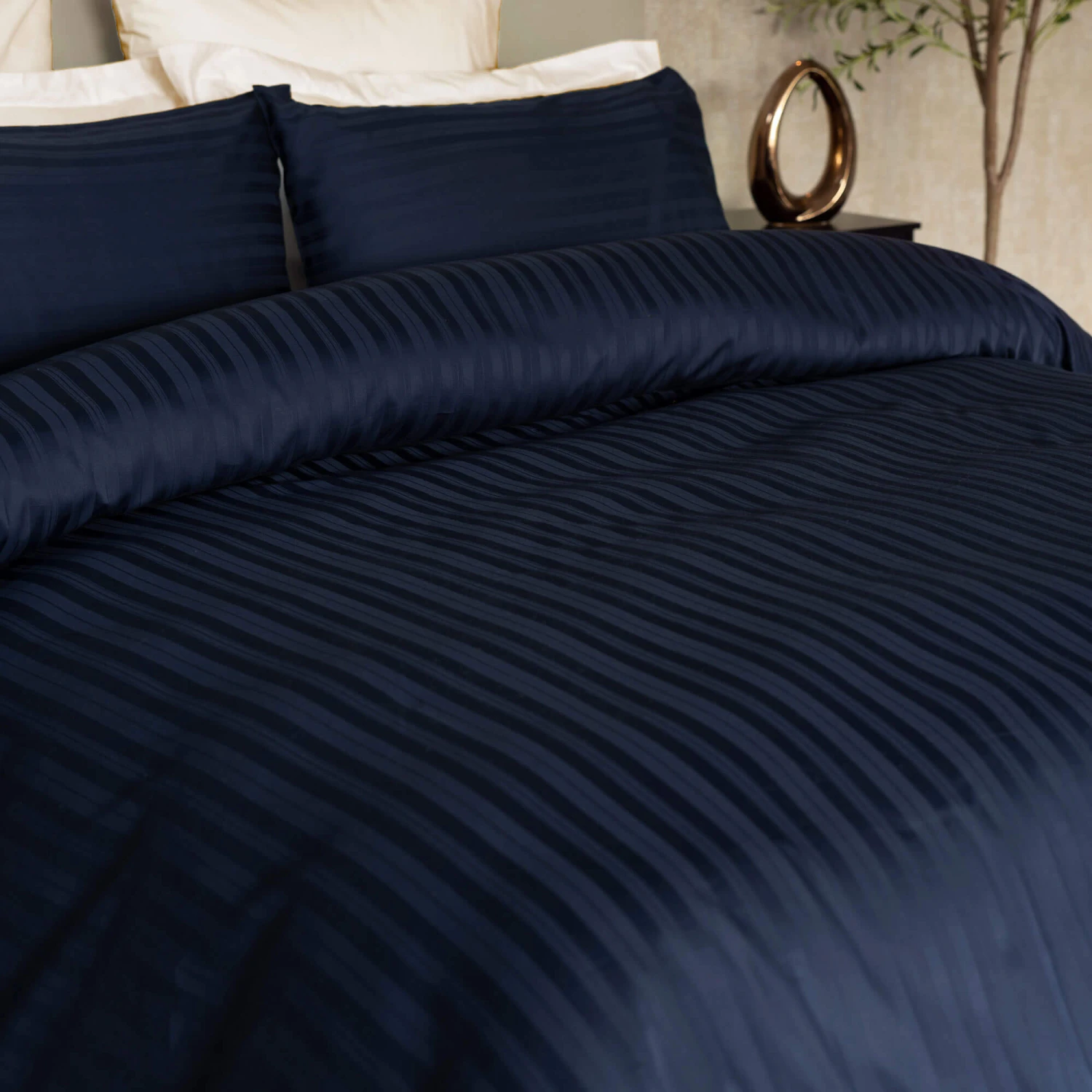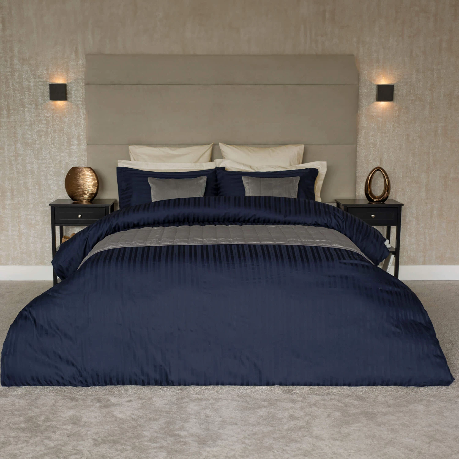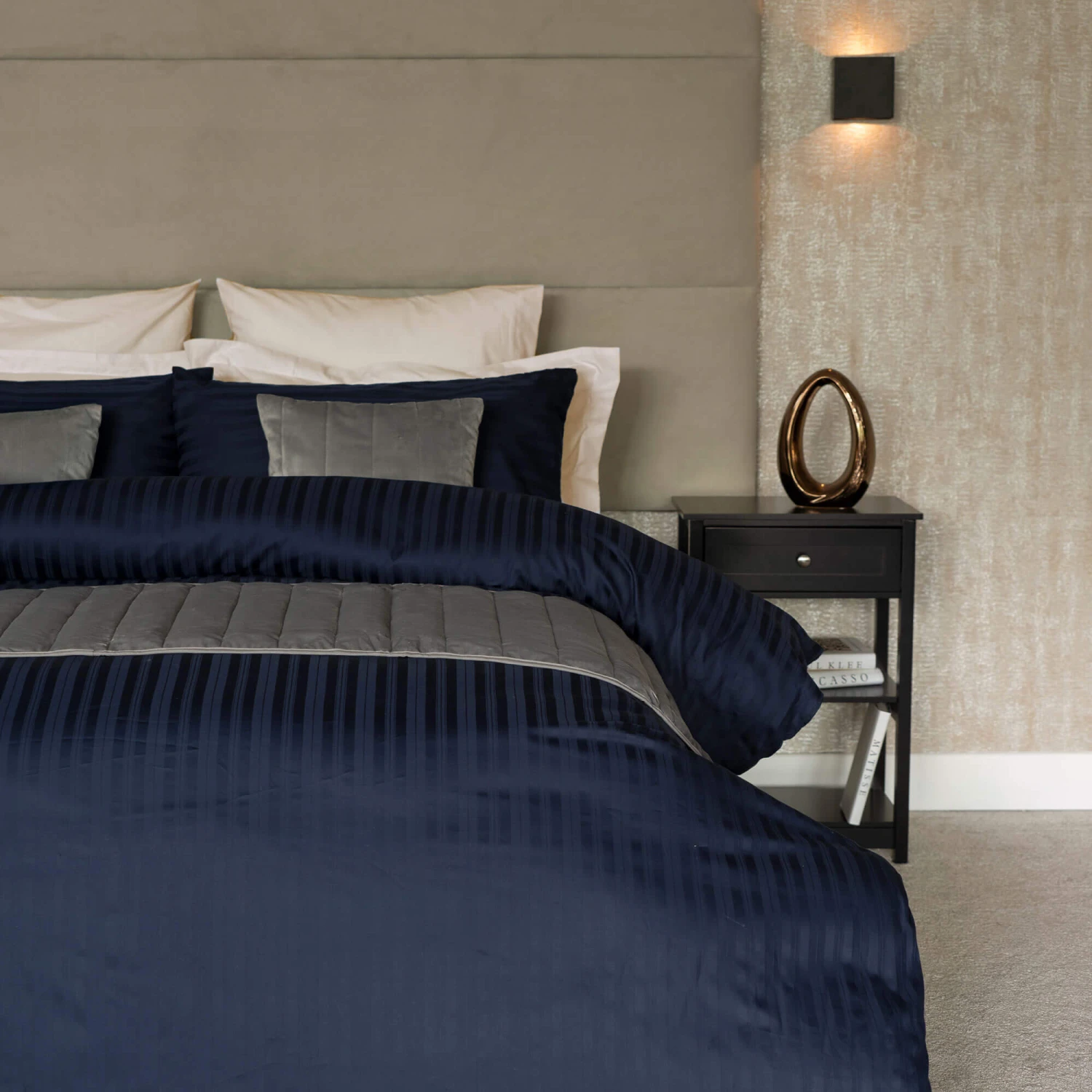 This Belledorm Tribeca Navy Single Duvet Set will add a sophisticated look to your bedroom. This luxurious duvet set has a thread count of 300 meaning that it provides a silky smooth finish and has a sense of luxury and indulgence. The fine stripes add a subtle texture, enhancing the fabrics sheen and creating a classy look.