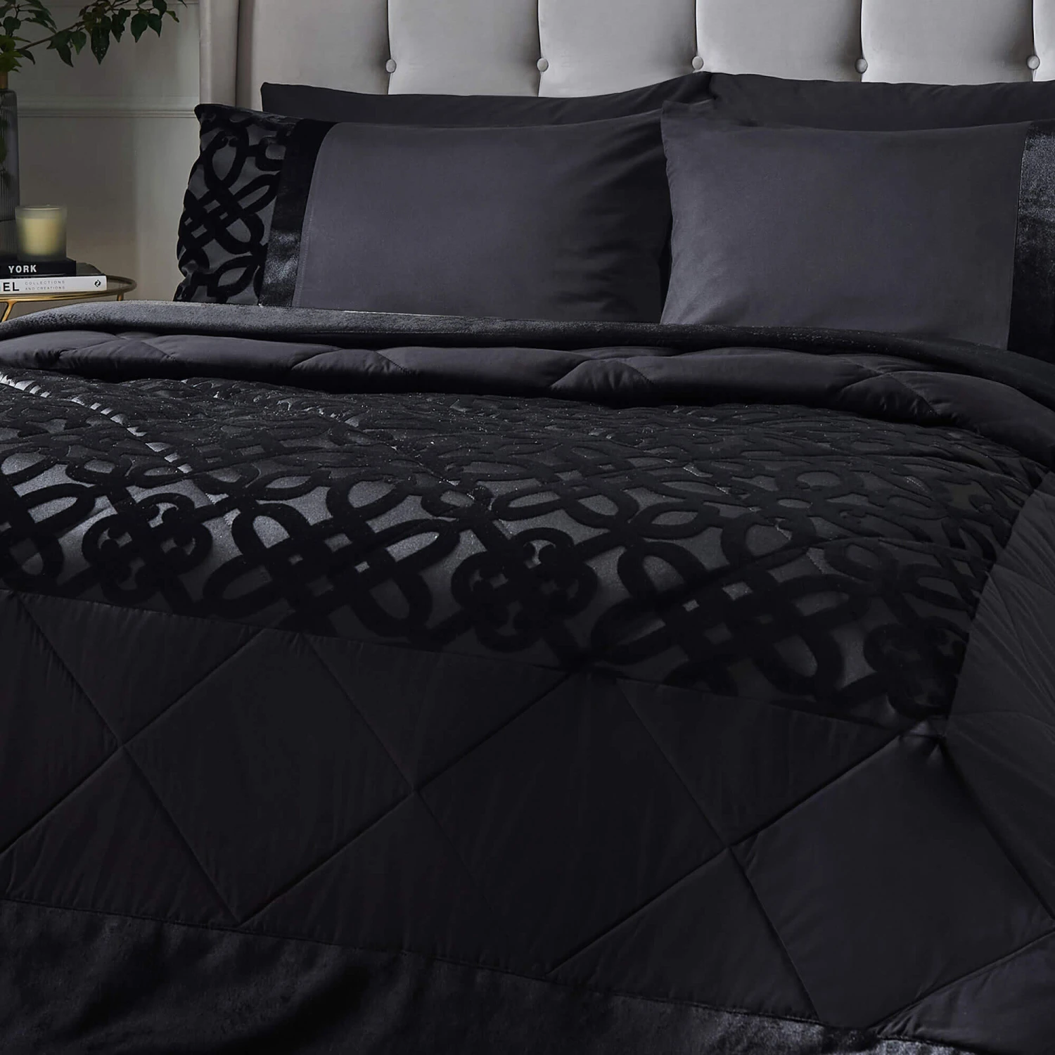 Catherine Lansfield Lattice Velvet Black Bedspread