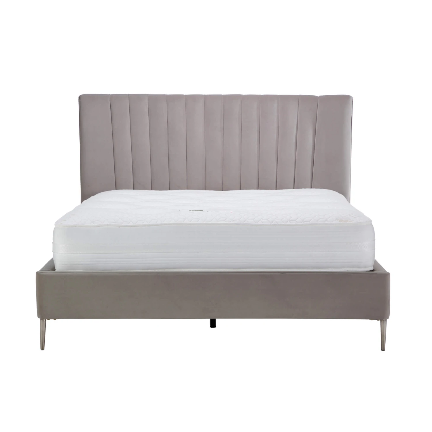 Elevate your bedroom into a sanctuary of comfort and style with the Dawson Grey Velvet Bed Frame with Metal Legs and Panelled Headboard. This luxurious bed frame, upholstered in plush grey velvet and accented with sleek metal legs, adds a touch of modern sophistication to any sleep space. The vertical panels on the headboard create a touch of visual interest and dimension, making this bed frame a true statement piece.