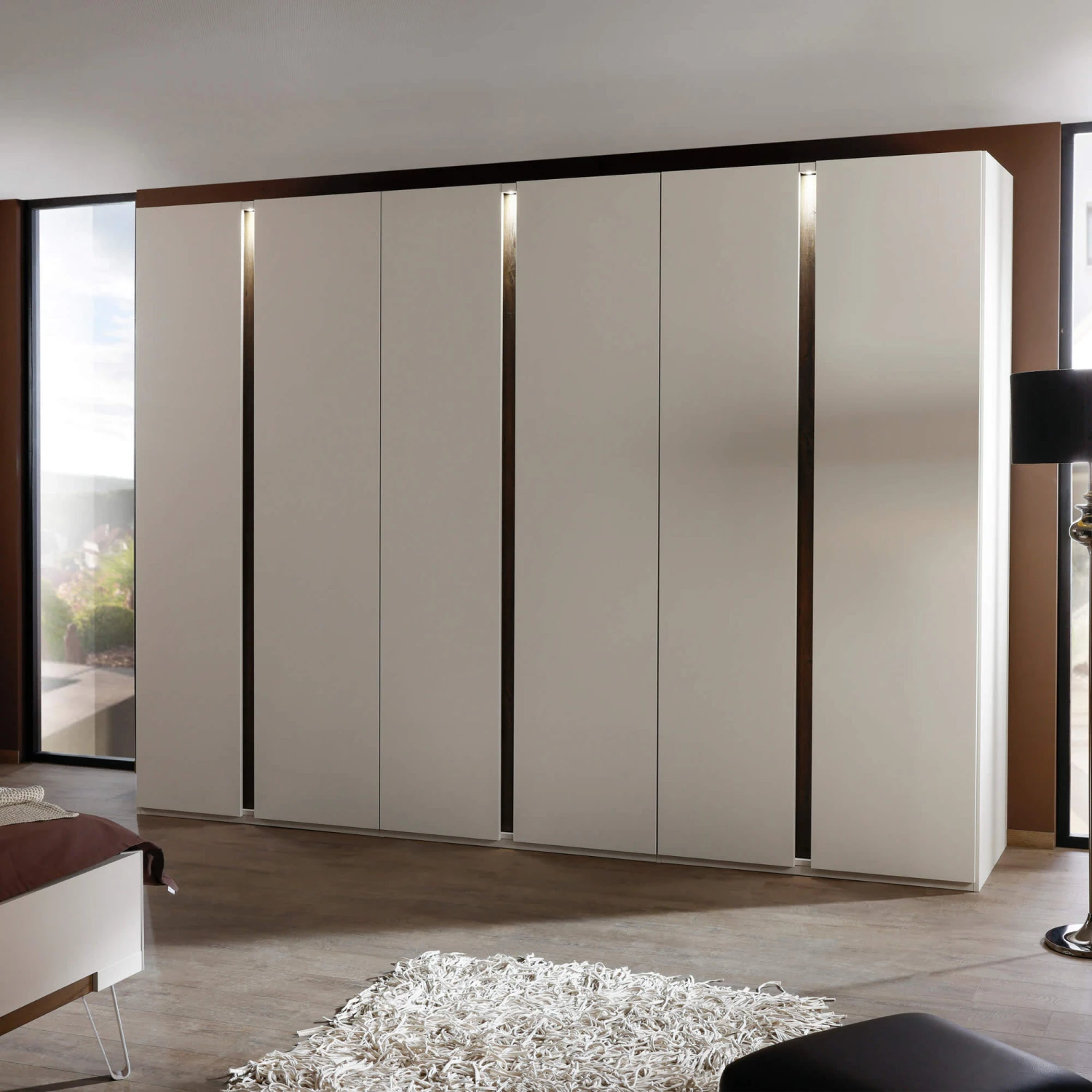 Crafted in Germany with meticulous attention to detail, the Larisa wardrobe offers ample storage space with its six generously proportioned doors. The integrated lighting illuminates your belongings, transforming the wardrobe into a stylish and functional centerpiece. The wardrobe’s sleek lines and minimalist aesthetic create a sense of calm and order, making it a perfect addition to any contemporary living space.
