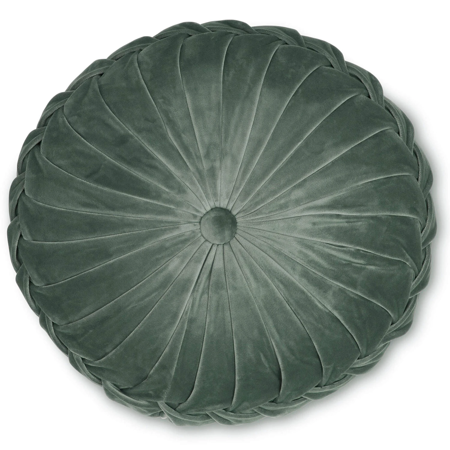 This beautiful Rosanna Fern Round Cushion by Laura Ashley features elegant pleats made from sumptuous velvet. Prefilled with a polyester circular pad, it is a perfect and glamorous finishing touch to your bedding set.