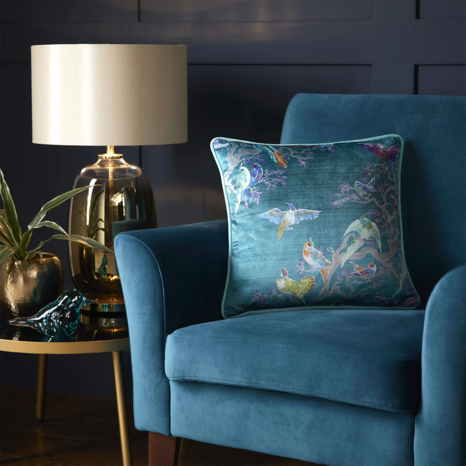 Laurence Llewelyn-Bowen Birdity Absurdity Blue Cushion