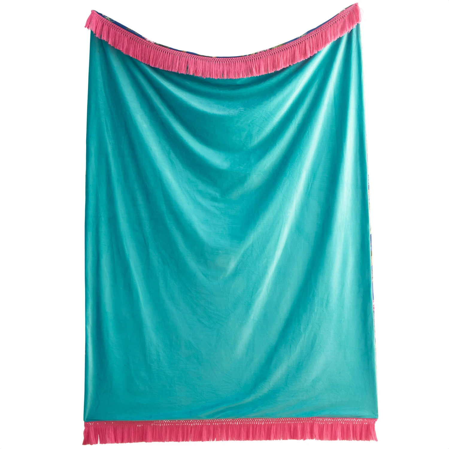 Add a touch of colour to your bedroom with this Laurence Llewelyn-Bowen Cotswold Fantasia 130cm x 180cm Navy Throw. The throw features a multicoloured floral pattern on top of a luxurious navy blue background which provides your room with a classy, contemporary look. The pink tassels on either end of the throw add extra detail whilst the reverse of the throw is a plain teal colour so you can pick and chose which side you want to be on display.