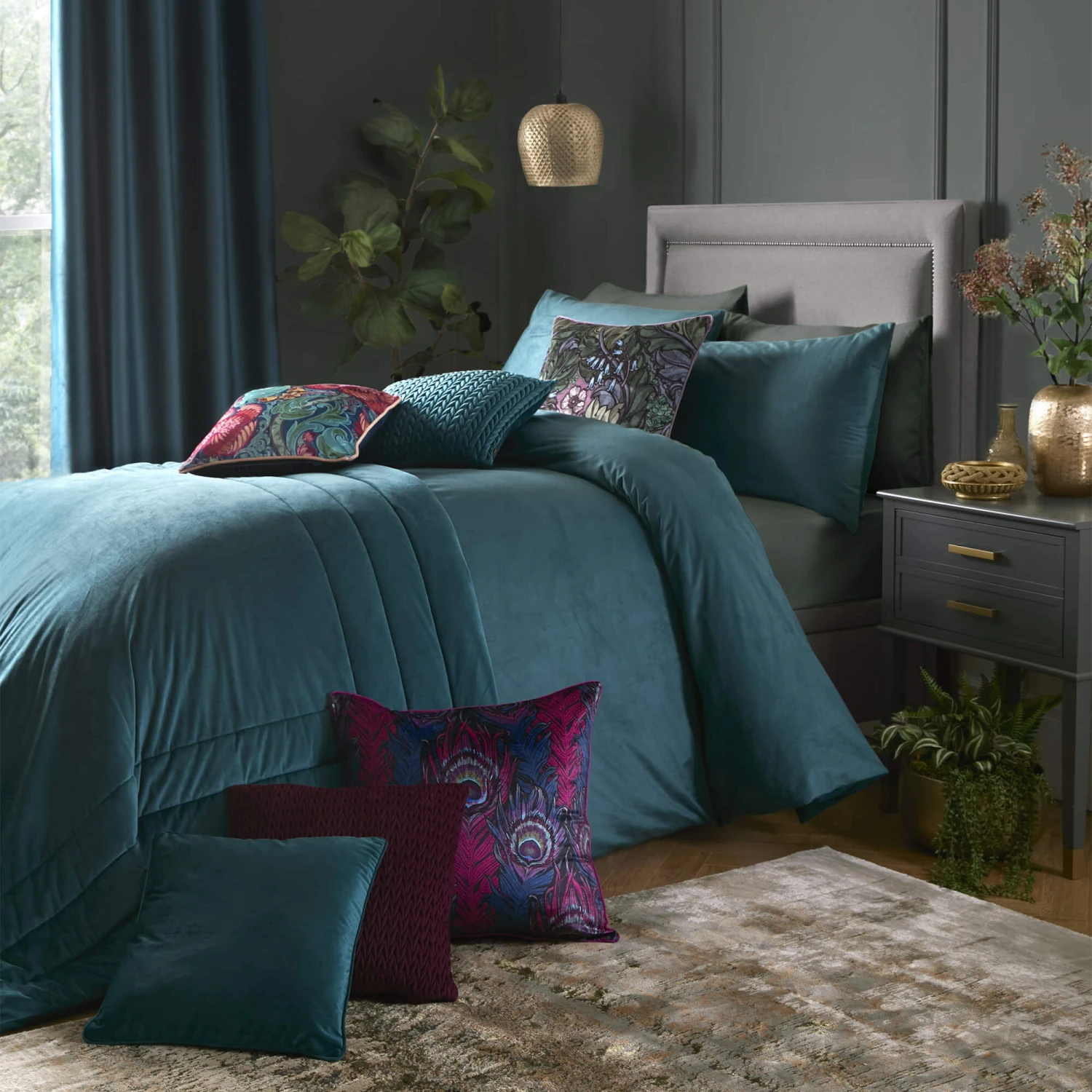 Bring an element of luxury to your boudoir with the stunning Montrose Teal duvet set by Laurence Llewelyn-Bowen. This luxurious velvet kingsize duvet set will look sensational in any luxury bedroom.