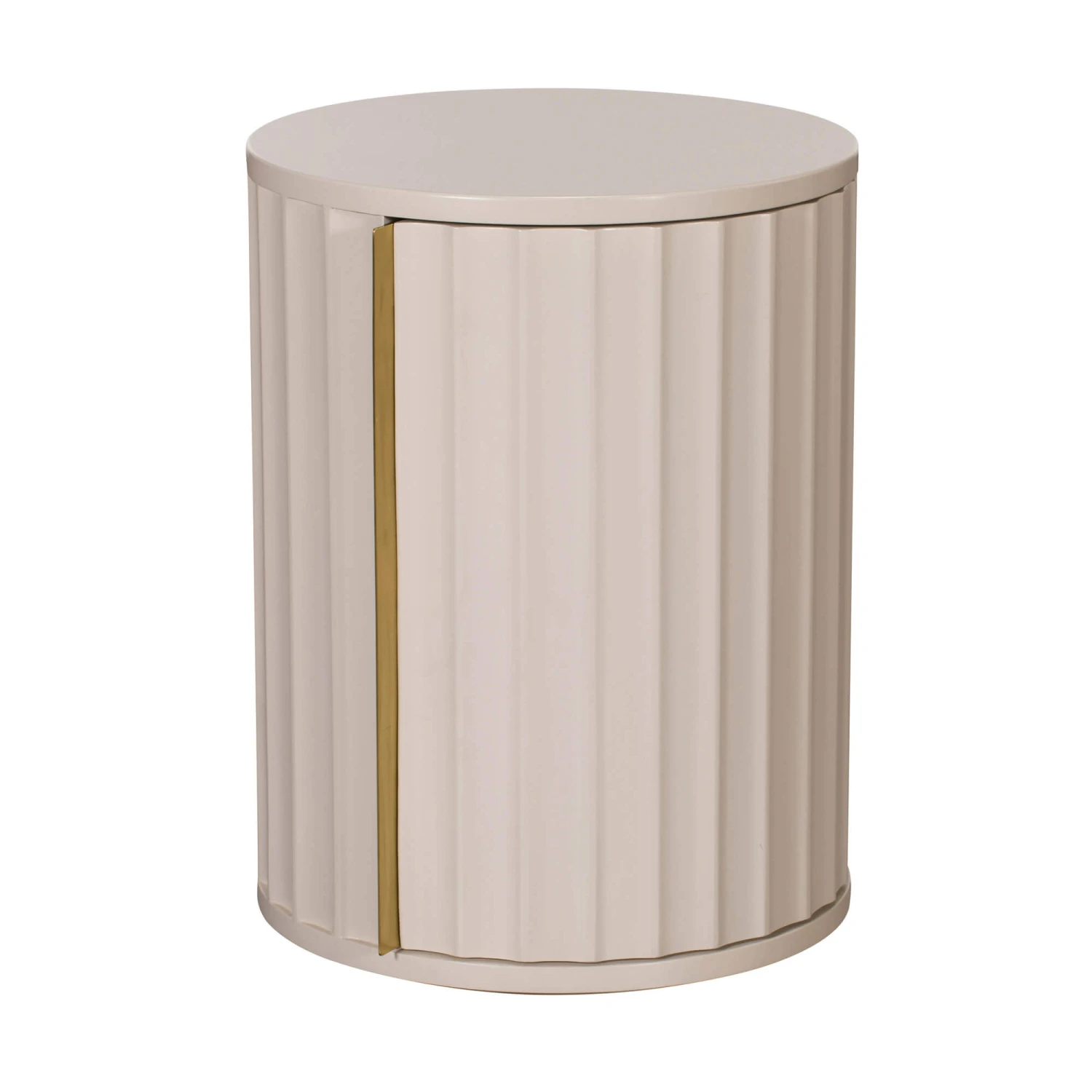 Each piece in the Lisette range is hand-crafted to perfection from mahogany wood and boasts a painted finish in a soothing, ivory tone, which highlights the eye-catching, ridge-like texture of the decorative grooves. The gold accent handle adds a lavish touch and the door opens to reveal a circular drawer and shelf and unique 2 tier design, reflecting how every element of the Lisette Bedside Table has been carefully constructed to offer both style and function; making the Lisette an impressive yet practical addition to any bedroom.
