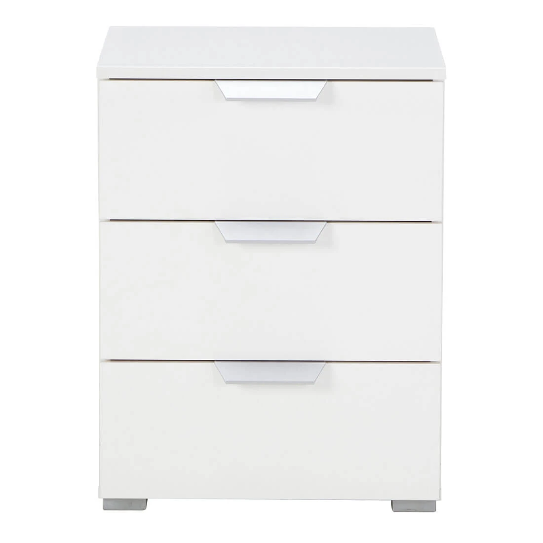 The Lucy 3 Drawer Bedside Cabinet will create a bright and airy feel in any bedroom space thanks to it’s crisp white colourway and glossy finish, complemented by sleek metal handles. Practical and timeless, the Lucy bedside chest provides plenty of additional storage space thanks to its three spacious drawers, perfect for tidying away smaller items of clothing or accessories.