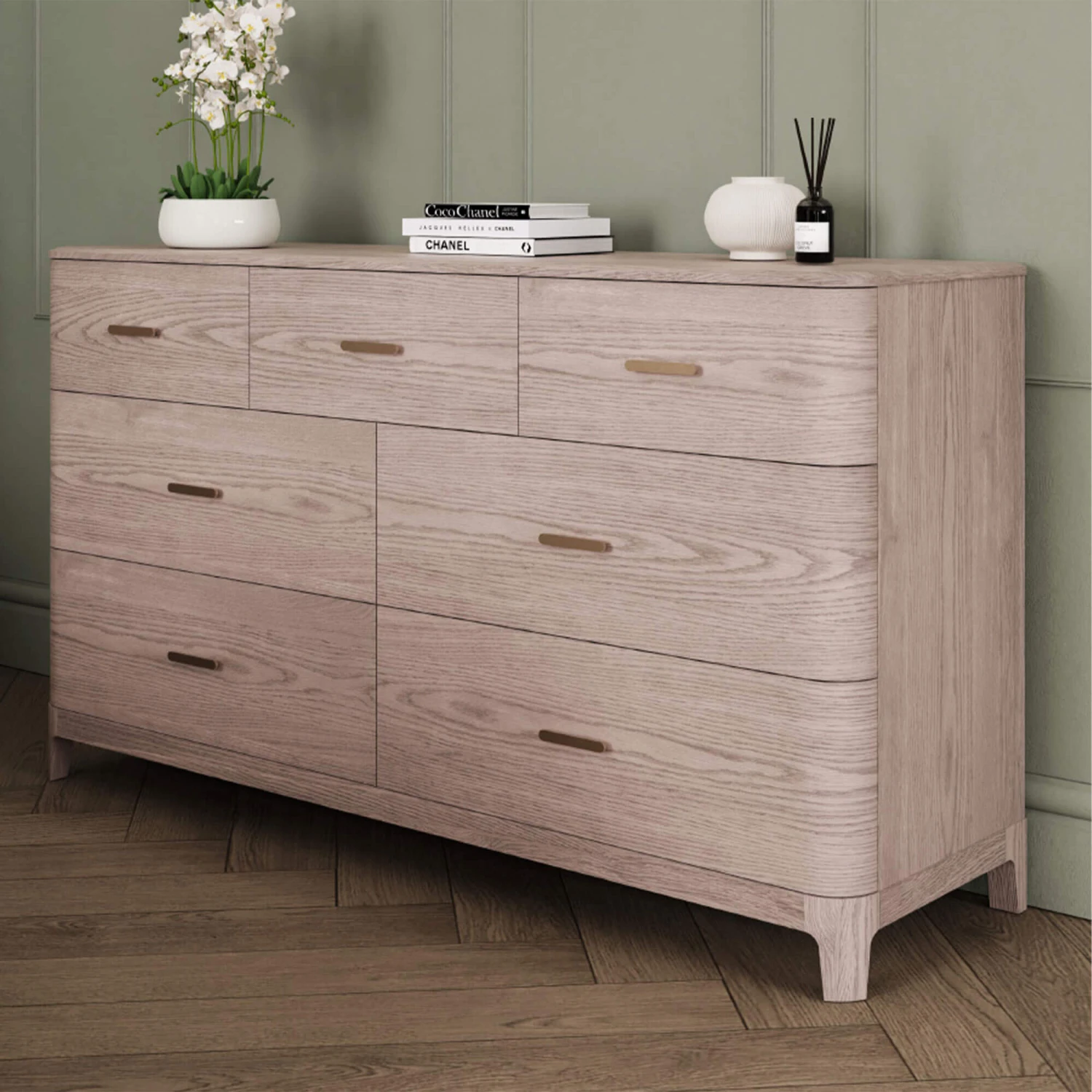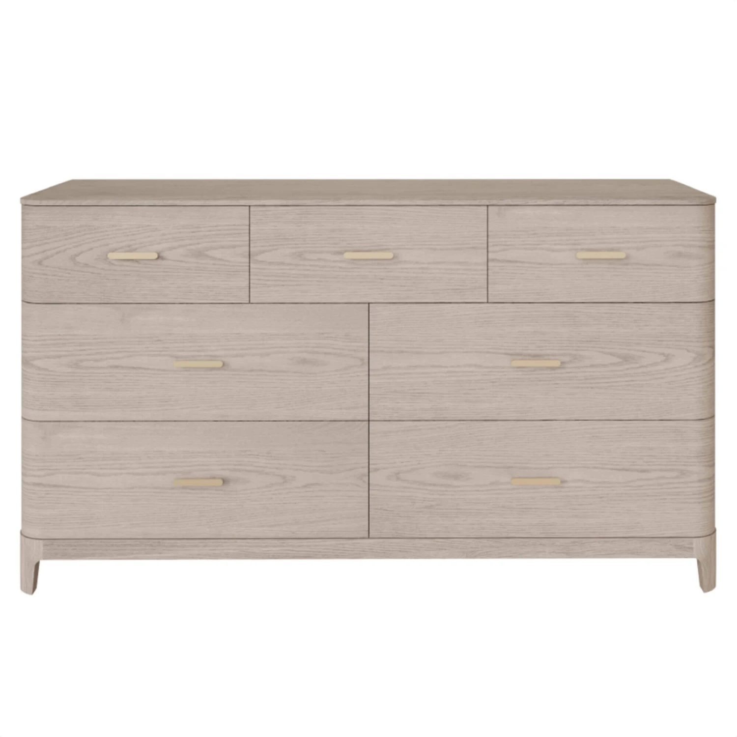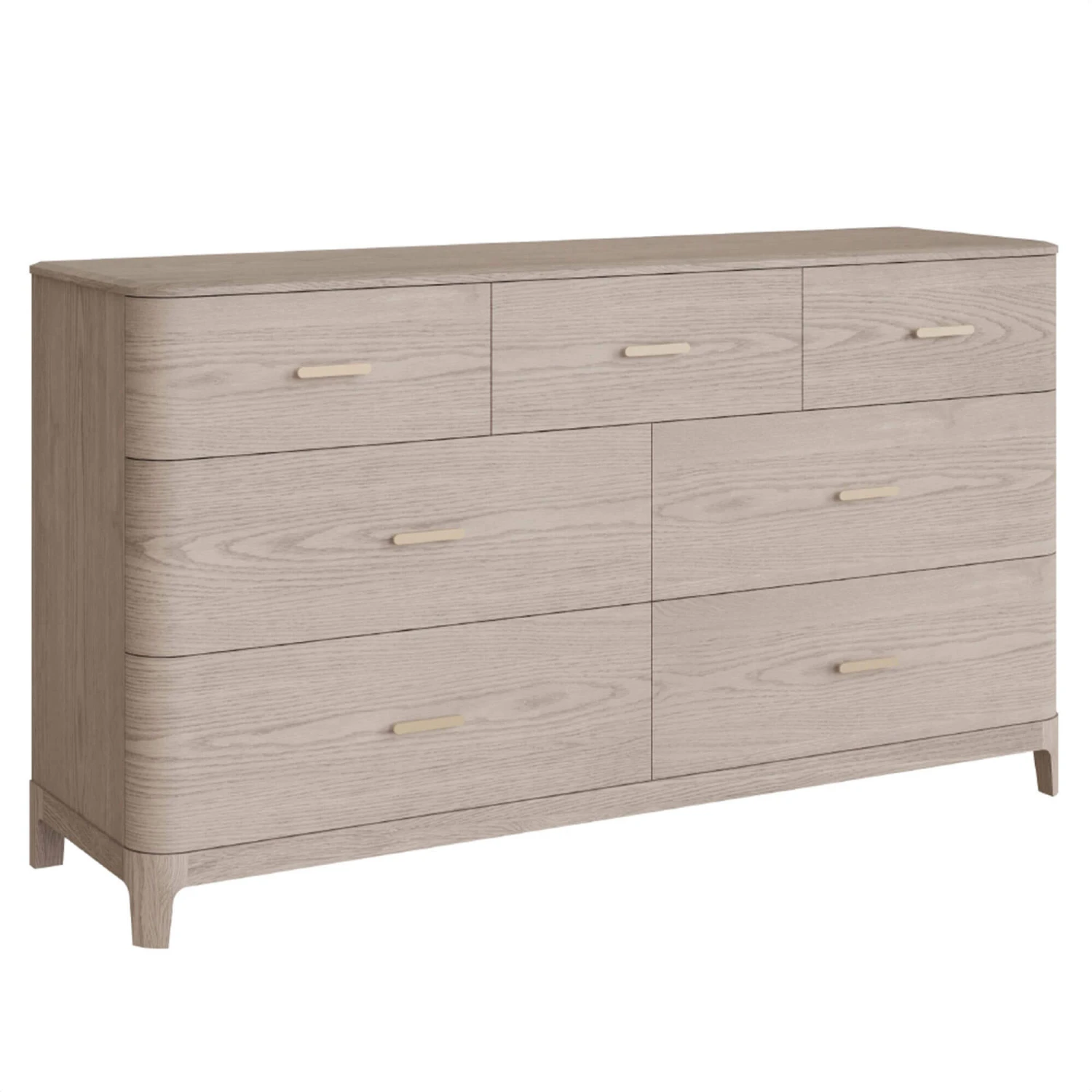 This beautifully crafted Romeo 7 Drawer Chest will create a contemporary look in your bedroom. The draws showcase elegant brushed gold metal handles which work perfectly with the cream Ashwood to create a sophisticated, stylish look. This chest of drawers can hold a lot so you can keep everything neatly stored away and keep your bedroom looking neat and tidy.
