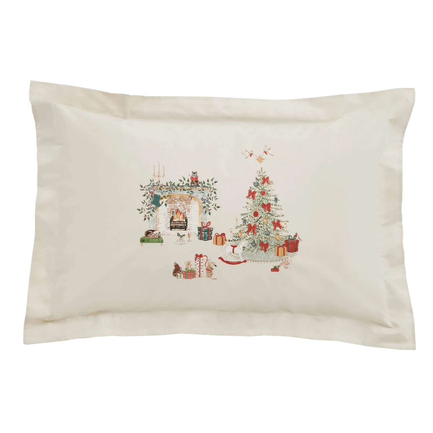 Create a warm and festive atmosphere in your bedroom with the Sophie Allport Cosy Christmas Superking Duvet Set. Adorned with charming illustrations of twinkling Christmas trees, crackling fireplaces and playful woodland animals, this delightful bedding set captures the magic of the season with Sophie Allport’s signature hand-drawn style. Made from 100% cotton, this duvet set is soft, breathable and comfortable, making it perfect for snuggling up during the colder months. The neutral base colour complements the colourful festive motifs, ensuring it blends seamlessly into both traditional and contemporary interiors.