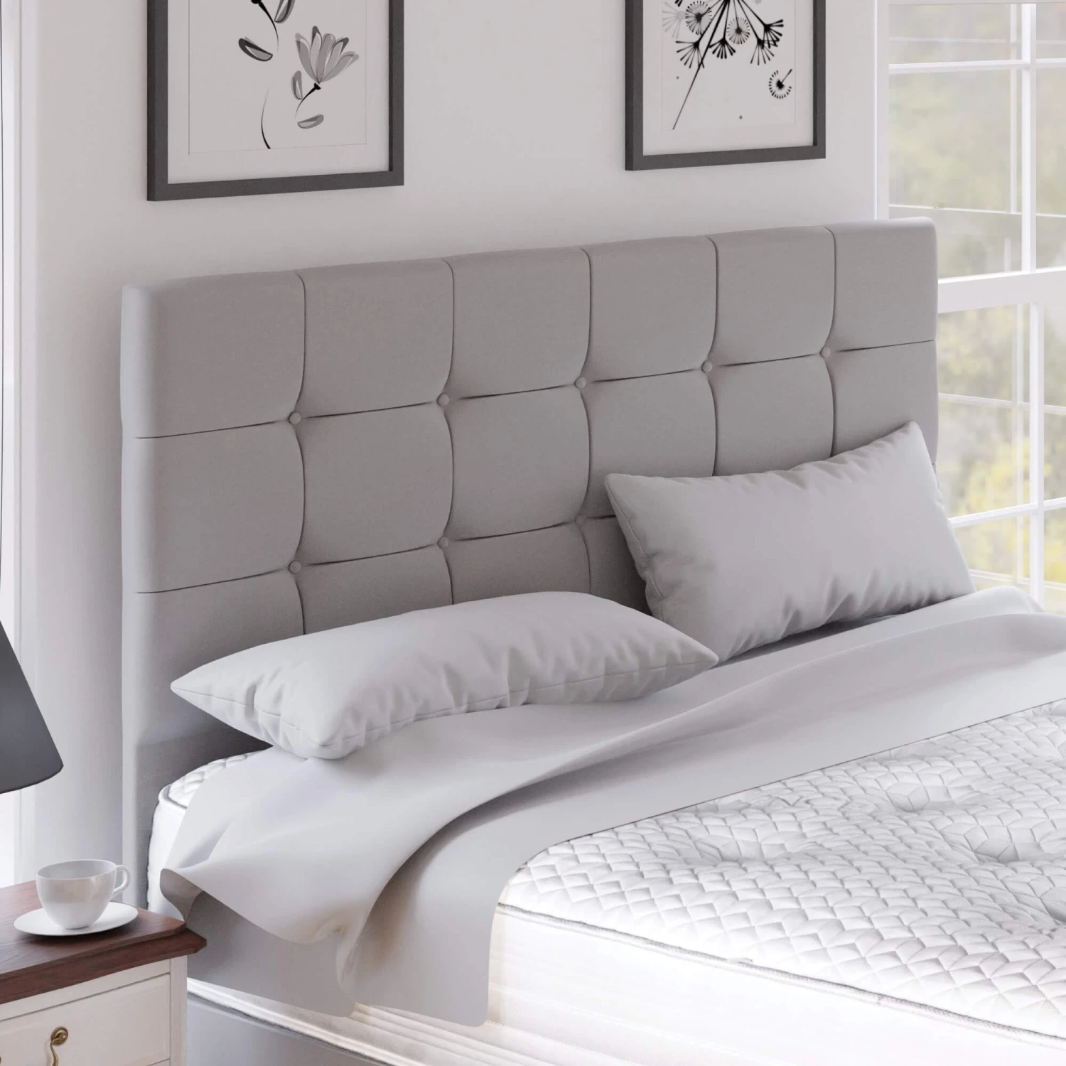 Add a touch of modern elegance and sophistication to your bedroom with the Surrey 135cm Double Silver Fabric Half Headboard. Upholstered in a beautiful plush silver fabric embellished with a tufted grid-effect pattern with deep value accents for a touch of detailing, the Surrey is sure to elevate the style factor of any modern or traditionally decorated bedroom.