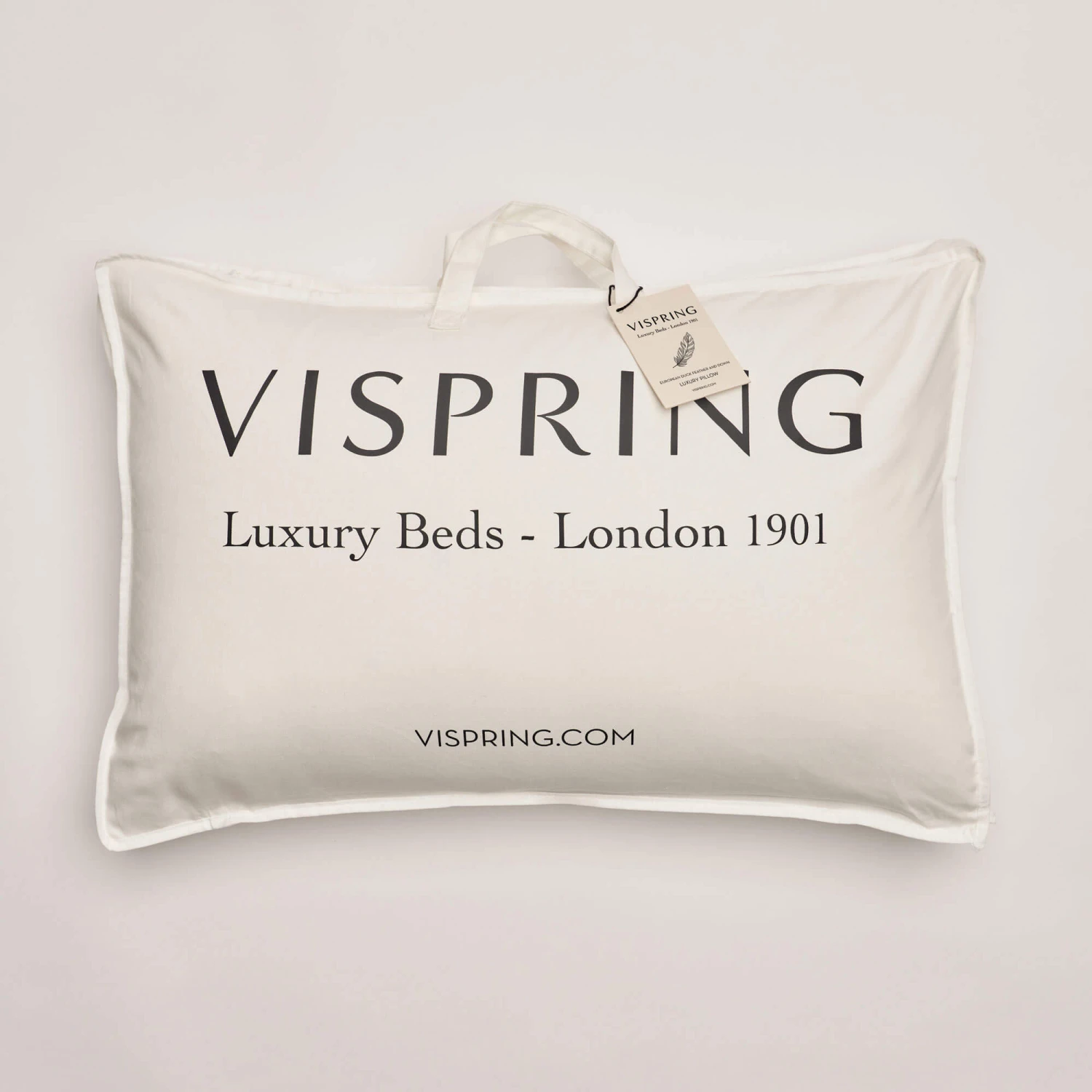 This European Duck Feather And Down Standard Pillow from Vispring has been specifically designed to provide you with the best nights sleep possible. The pillow offers the perfect balance between comfort and support and is filled with 90% European duck feather with 10% Duck down filling. The cover of this pillow is made of 100% cotton which along with the luxurious filling will provide you with the perfect nights sleep every night.